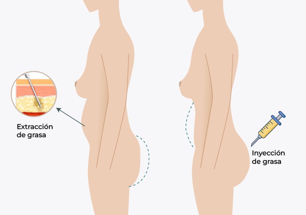 El procedimiento de Lipotransferencia o Aumento Glúteo con transferencia de grasa, consiste en procesar la grasa obtenida durante una Lipoescultura mediante decantación, para luego colocarla en jeringas de 60 centímetros cúbicos y transferirla a la región glútea; aumentando su volumen y proyección, y consiguiendo modelar su forma.